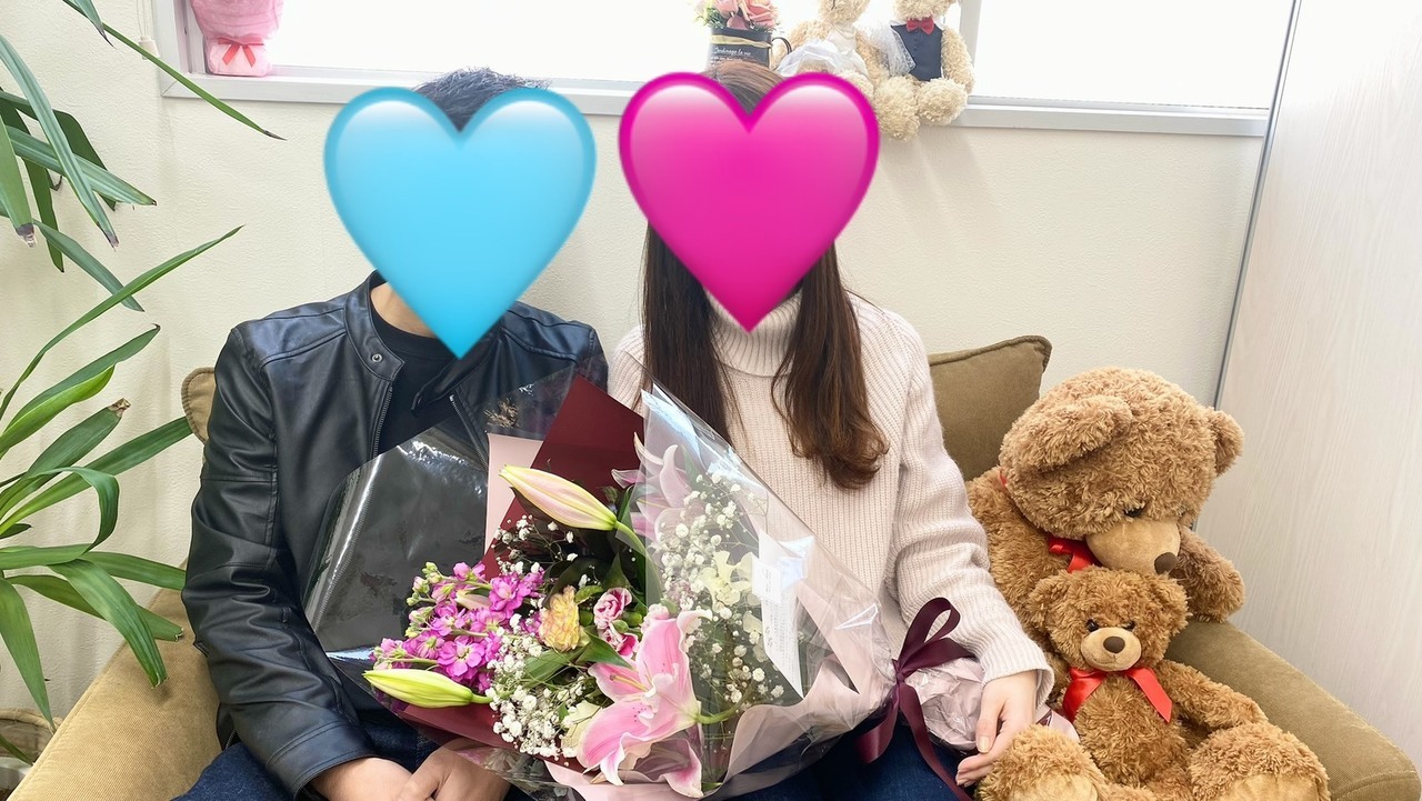 匠様が無料相談にいらしたのは、2024年の8月。 とてもオシャレでカッコ良い匠様。 ですが、婚活が中々上手くいかず、ルリアンで活動したいとお話してくださいました。 本当はすぐにでも活動したい気持ちでしたが、将来のことを考えて転職活動を先に済まされ、落ち着いた2025年から本格的に活動をスタートすることになりました。 美園様がご入会されたのが、2025年1月末。 オシャレで上品で可愛らしい美園様は大人気! 沢山のお見合い申込みがございました。 積極的にお見合いや仮交際にも入られましたが、交際を深めていきたいと思える男性に中々出会えませんでした。 そんな中、匠様からお申込みがありました。 年上~40代の方からのお申込みが多かった中で、自分より年下の匠様からのお申込みに「私で良いのかな?」と不安になったと、当時のことをお話してくださいました。 ですが、お見合いからお互い好印象で、その後も頻繁にデートを重ねていきます。 最初は気をつかう部分もありましたが、回を重ねるごとに打ち解けてきて、「今までこんなに私を大事にしてくれる人はいなかったと思います。」とおっしゃった美園様。 このまま順調に交際が進んでいくか…と思った中で、美園様に悩みが出てきます。 それは、美園様のお誕生日。 匠様は何か考えてくれているのかな?と期待していました。ですが、匠様から誕生日の話題に触れることはなく日にちが近づき、結局、美園様から話題を持ちかけることになりました。 一方の匠様は何も考えていなかったわけではなく、美園様のリクエストに応えたい!という気持ちでいたのですが、それを伝えるタイミングを逃していたのです。 記念日やイベントを大切にしたい美園様にとって、お誕生日の出来事はとてもショックでした。 その美園様のお気持ちを真摯に受け止めた匠様。 プロポーズの時が近づき、美園様からこんなプロポーズが良いな…という希望をルリアンでお聞きし、それを匠様にお伝えしました。 誕生日の件があったので、匠様はサプライズやご準備が苦手かな?大丈夫かな?でも、美園様にとって、私たちがお節介で介入するよりも、匠様が美園様のことを考えての行動が一番嬉しいだろうな…と、私たちもドキドキする気持ちでクリスマスイヴのプロポーズの日を迎えました。 翌日、美園様からは素敵な画像と共に、「私からのリクエストに応えるだけでなく、彼なりに考えたり調べたりしてくれた部分が見えて、事前にプロポーズされることはわかっていても涙が出るくらい嬉しかったです!他にも不安なこともありますが、幸せを噛み締めて入籍まで進んでいきたいと思います。」とメッセージをいただきました。 その画像を見た瞬間、匠様が美園様を想っている気持ちが伝わってきて、こちらまで嬉しくて泣きそうになってしまいました。 自分の気持ちに向き合って、ちゃんと相手に伝えた美園様。 その気持ちに応えようと、真摯に向き合った匠様。 そんなお二人なら、これから先、新たな課題が出てきても、きっと乗り越えられると信じています! ご成婚本当におめでとうございます。 ご入籍は、3月を予定されているとのことで、ご報告楽しみにお待ちしておりますね♡ 末永くお幸せに…