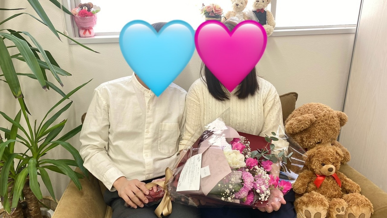 陽斗さん(27歳)/奈央さん(33歳) お二人は、出会った瞬間から不思議なほど共感できる部分が多く、 初対面とは思えないほど自然に会話が弾んだお二人でした。 初回のデートで奈央さんが希望したのは、ファミリーレストラン。 理由はただ一つ、「たくさん話したいから」。 その選択は大正解で、気づけば7時間近くもおしゃべりをしていたそうです。 (後日談、お見合いも実は3時間もお話しされていたと後で聞いてびっくり!) 「ここまで価値観が合う人はいないよね」 お互いがそう口にするほど、考え方や大切にしていることが驚くほど一致していました。 二回目のデートの時点で、お互いの気持ちはすでに真剣交際へ。 その後も交際期間3か月の間、毎週欠かさずデートを重ねていきました。 印象的だったのは、お二人の“話し合いの深さ”。 言いづらいこともきちんと伝え合い、それを相手が受け止めてくれる安心感。 妊活のこと、ブライダルチェック、新婚旅行の希望など、 本来なら後回しにしがちな話題も、自然にオープンに話し合えていました。 奈央さんが具体的にお付き合いについてリードし、 陽斗さんはそれを柔軟に受け止め、素直に気持ちを伝える。 そのバランスがとても心地よく、 思わず「ルリアン要らずですね(笑)」と感じてしまうほどでした。 ここまで本音で話し合えたのは、 奈央さんの裏表のない真っすぐさと、 陽斗さんの柔軟で受け入れていく姿勢があったからこそ。 何を話しても考え方や価値観がほぼ同じ—— まさに運命の出会いだったのだと思います。 出会いから3か月目、プロポーズの日を迎えました。 陽斗さんは、「奈央さんが喜んでくれるように」と、 場所や演出などを一生懸命考えて準備されたそうです。 お二人のことですから、その日は“筒抜け状態”。 サプライズではなかったようですが、それもまた微笑ましいお二人らしさでした。 そしてプロポーズの後、今度は奈央さんから陽斗さんへ。 奈央さんはこの日のためにお手紙を用意し、 プロポーズを受けたあとに、その想いを言葉にして手渡されました。 「分かっていても、嬉しい」 「分かっていても、心が動く」 そんな温かさに包まれた、忘れられない一日だったそうです。 奈央さんは、ルリアン10周年記念でお守りをプレゼントした会員様。 ご入会から2か月後に陽斗さんと出会い、その3か月後にはプロポーズ。 一方、27歳という若さながら高収入で、 「怒ったことがない」というほど穏やかな陽斗さん。 ご入会から半年、なかなか価値観の合う方に出会えずにいましたが、 「価値観が合う!!!」と心から思える奈央さんとの出会いで、ご成婚となりました。 たくさん話し、たくさん向き合い、 何一つ隠さずオープンに気持ちを重ねてきたお二人。 これからも変わらず、 話すことを大切に、笑顔あふれる日々を築いていかれることでしょう。 奈央さん、陽斗さん 本当におめでとうございます。 末永いお幸せを心より願っております。